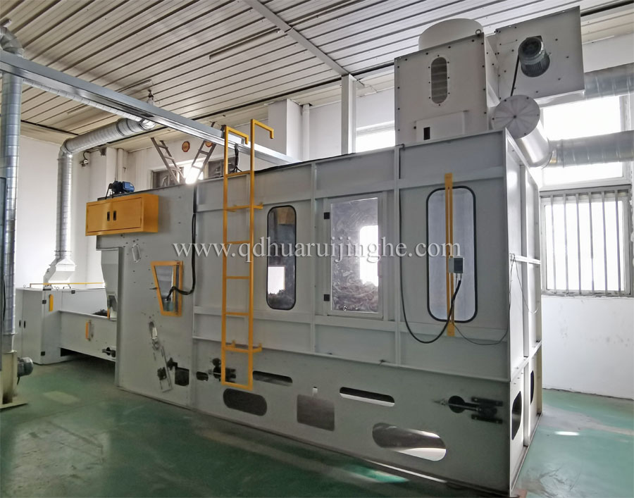 將初步開松的兩種或兩種以上的類型纖維進(jìn)行攪拌均勻,多種纖維混合喂入,初步開松混合去除雜質(zhì),達(dá)到連續(xù)生產(chǎn)的作用。